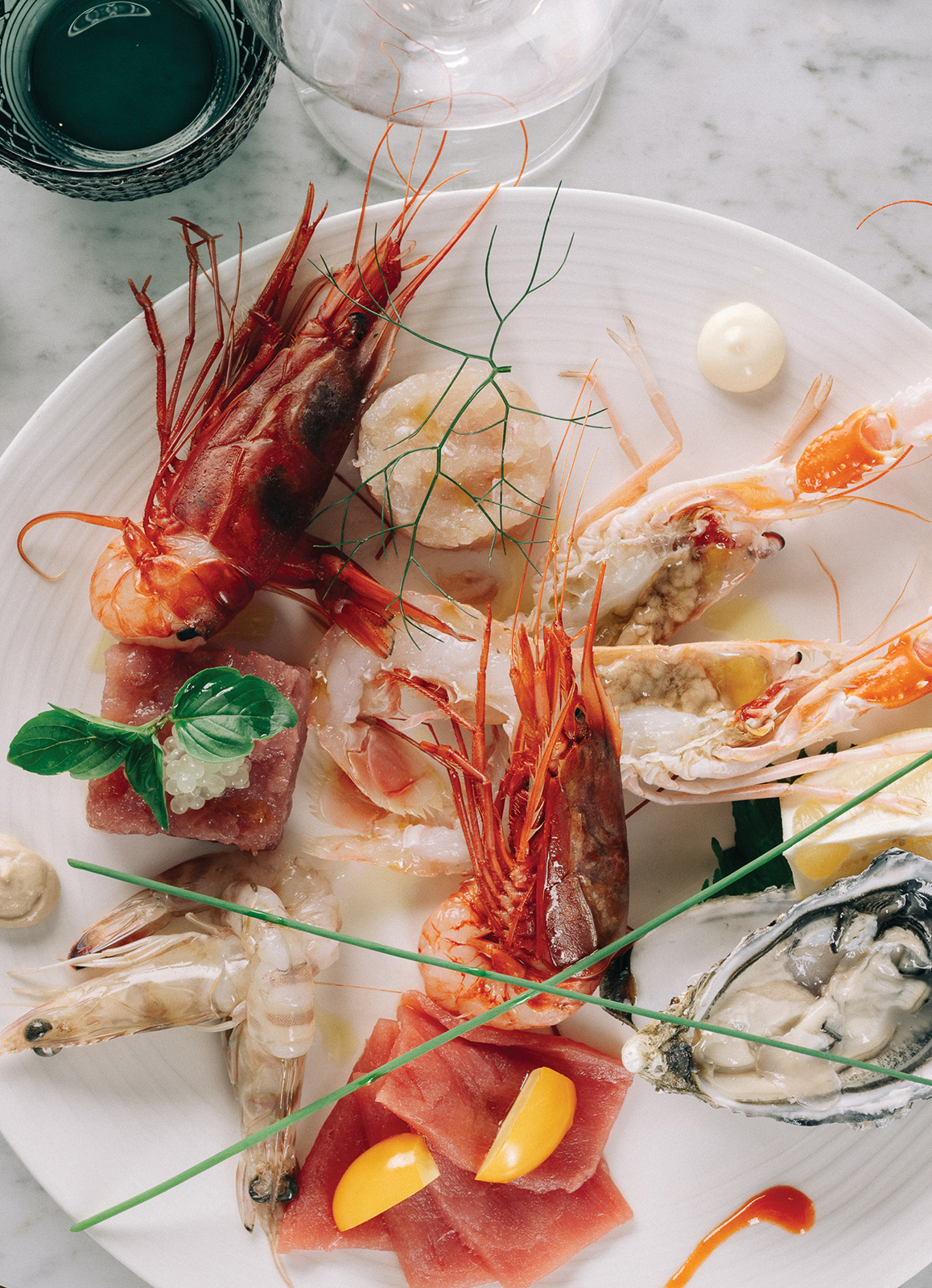 I piatti, frutto della selezione del miglior pescato e specialità del territorio, sono serviti secondo i canoni di una cucina internazionale, ma sempre originale, semplice e leggera.